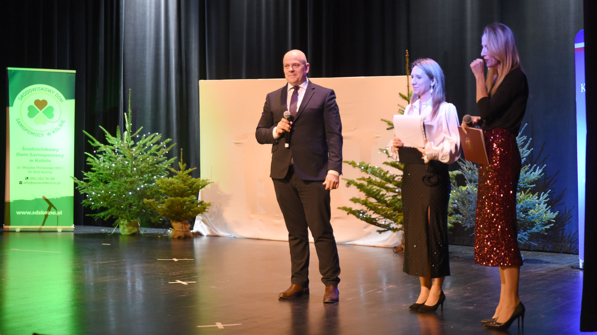 Miło nam jest wspierać takie inicjatywy. Zawsze w człowieku trzeba odkrywać to co jest dobre, to co chce i potrafi pokazać publiczności. I gratuluję Państwu odwagi oraz umiejętności aktorskich i wokalnych. Bardzo się cieszę, że dzisiaj przed świętami wprowadzicie nas w klimat świąt - mówił Karol Pieloszczyk, Wicestarosta Kolneński.